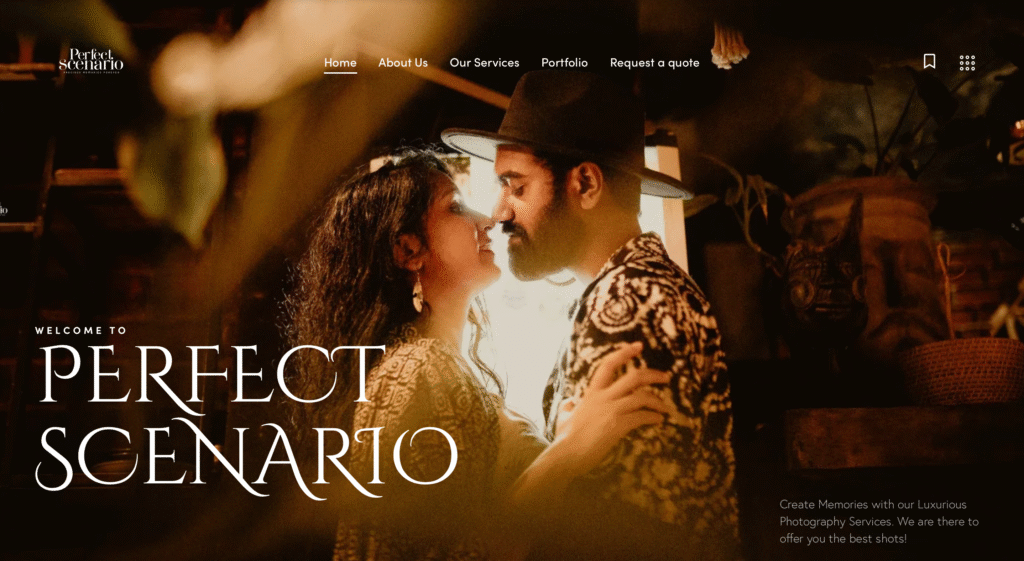 The PerfectScenario website is more than a platform; it is a carefully curated digital venue. Designed with minimalism and romance at its heart, every page is structured like a chapter in a love story — from “Our Journey” to “Save the Date” and “Gallery of Memories.
