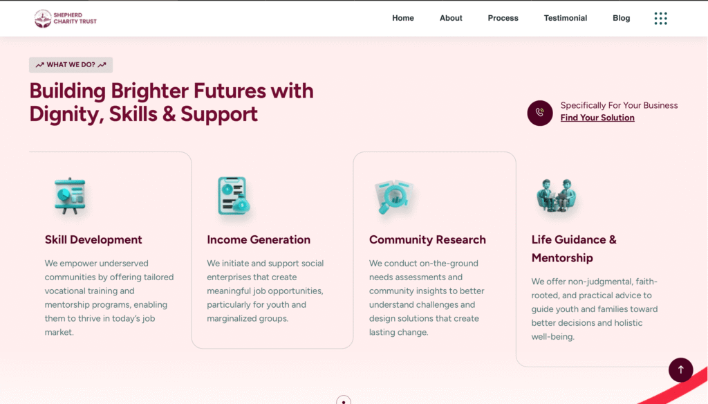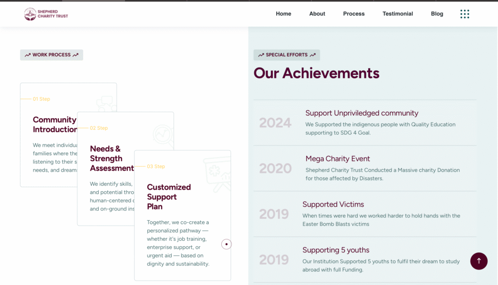 The end result: a site that feels professional, clean, and mission-driven — perfectly aligned with Shepherd Charity Trust’s promise of building hope and empowering futures.